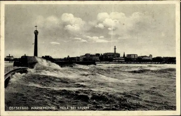 Ak Ostseebad Warnemünde Rostock, Mole bei Sturm