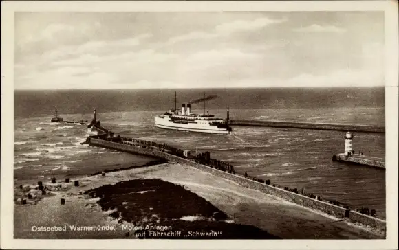 Ak Ostseebad Warnemünde Rostock, Molen, Fährschiff Schwerin