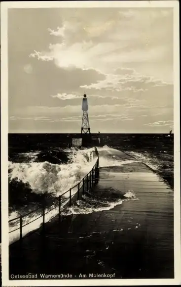 Ak Ostseebad Warnemünde Rostock, Molenkopf, Wellen