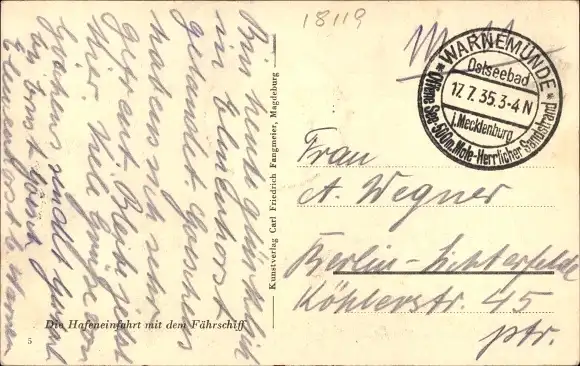 Zustand, siehe Scan, gelaufen, 1935 - ca 14 cm X 9 cm
