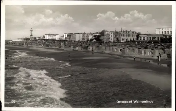 Ak Ostseebad Warnemünde Rostock, Strand, Kurhaus, Leuchtturm