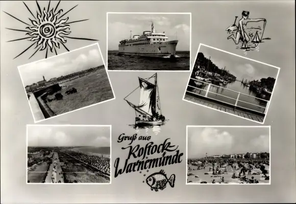 Ak Ostseebad Warnemünde Rostock, Strandpartie, Strandpromenade, MS Warnemünde, Hafen