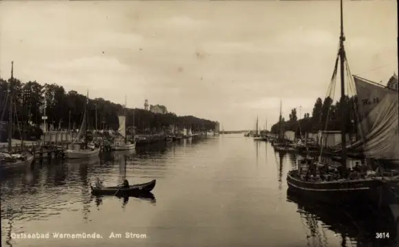 Ak Ostseebad Warnemünde Rostock, Strom, Hafen, Boote