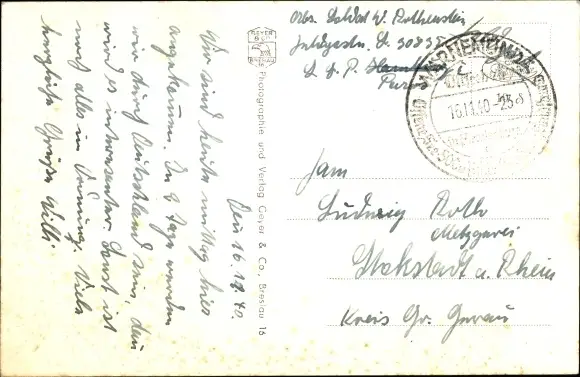 Zustand, siehe Scan, gelaufen, 1940 - ca 14 cm X 9 cm