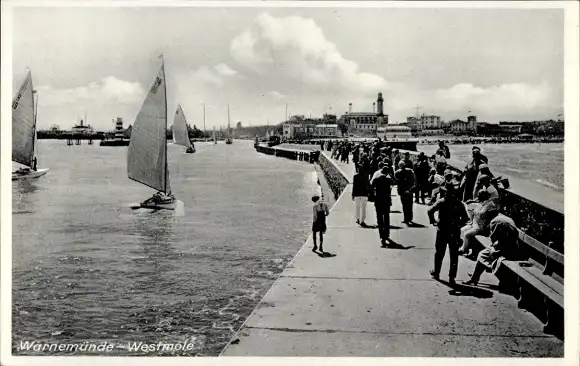 Ak Ostseebad Warnemünde, Westmole, Segelboote