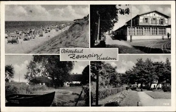 Ak Ostseebad Zempin auf Usedom, Strand, Ruderboot