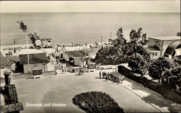 Ak Ostseebad Zinnowitz auf Usedom, Seebrücke, Partie am Strand