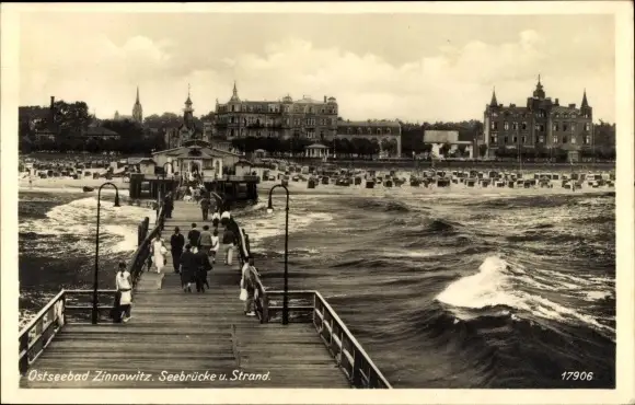 Ak Ostseebad Zinnowitz auf Usedom, Seebrücke, Strand