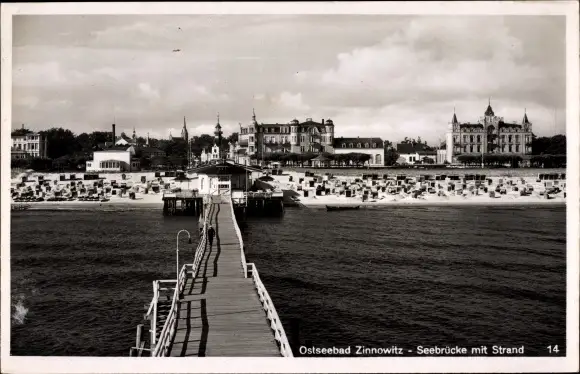 Ak Ostseebad Zinnowitz auf Usedom, Seebrücke, Strand