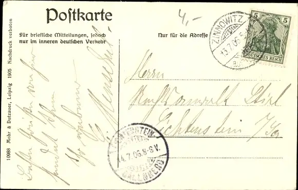 Zustand, siehe Scan, gelaufen, 1906 - ca 14 cm X 9 cm
