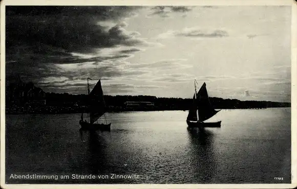 Ak Ostseebad Zinnowitz auf Usedom, Strand, Abendstimmung, Segelboot