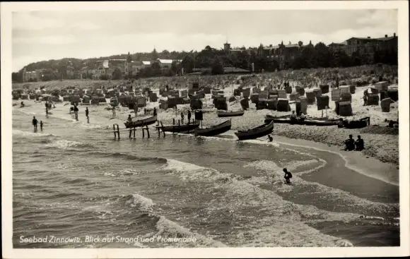 Ak Ostseebad Zinnowitz auf Usedom, Strand, Promenade, Boote