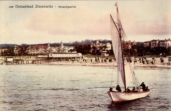Ak Ostseebad Zinnowitz auf Usedom, Strand, Segelboot