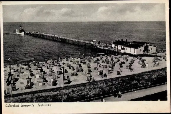 Ak Ostseebad Zinnowitz auf Usedom, Strand und Seebrücke