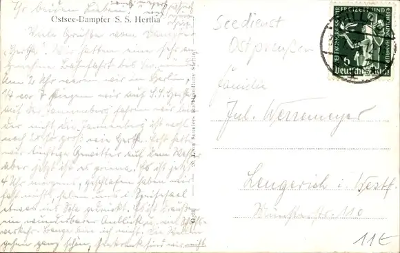 Ak Ostseedampfer SS Hertha, Reederei Braeunlich Stettin, Bugansicht