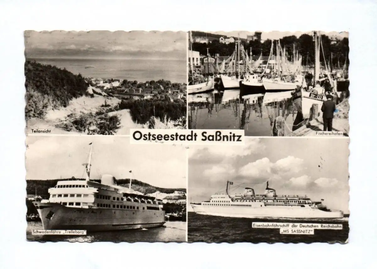 Ak Ostseestadt Saßnitz Schwedenfähre Boote Teilansicht DDR 1960