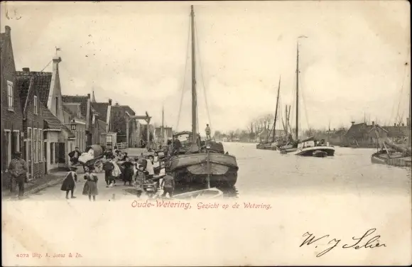 Ak Oude Wetering Südholland, Gezicht op de Wetering, Boote