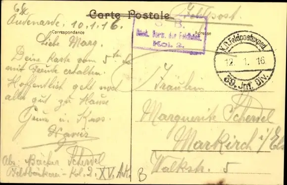Zustand, siehe Scan, gelaufen, 1916 - ca 14 cm X 9 cm
