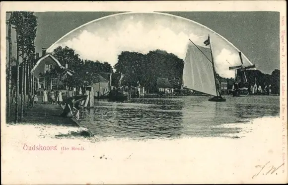 Ak Oudshoorn Südholland Niederlande, Uferpartie, Segelboot