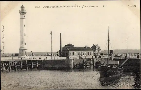 Ak Ouistreham Riva Bella Calvados, Port, Le Phare