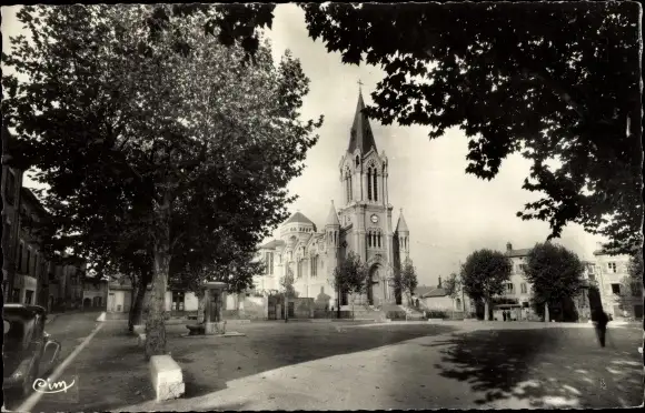 Ak Oullins Lyon Rhône, La Place et l'Eglise St-Martin