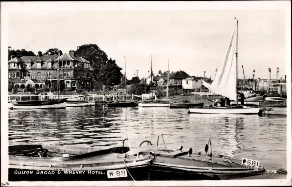 Ak Oulton Broad Suffolk England, Wherry Hotel, Boote