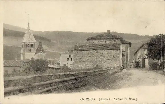 Ak Ouroux Rhône, Entree du Bourg, Kirchturm