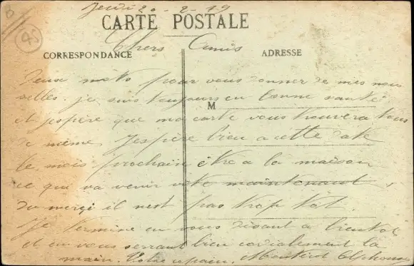 ungelaufen, datiert 1919, Rückseite beschrieben, sehr guter Zustand
