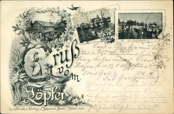 Ak Oybin in Sachsen, Gruß vom Töpfer, Das Felsentor, Schildkröte