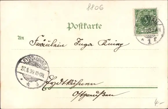 Zustand, siehe Scan, gelaufen, 1899 - ca 14 cm X 9 cm
