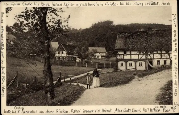 Ak Oybin in Sachsen, Straßenpartie, Frau mit Kind, Die Hölle