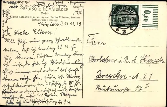 Zustand, siehe Scan, gelaufen, 1933 - ca 14 cm X 9 cm