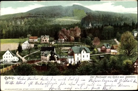 Ak Oybin in der Oberlausitz, Hochwald vom Ort gesehen