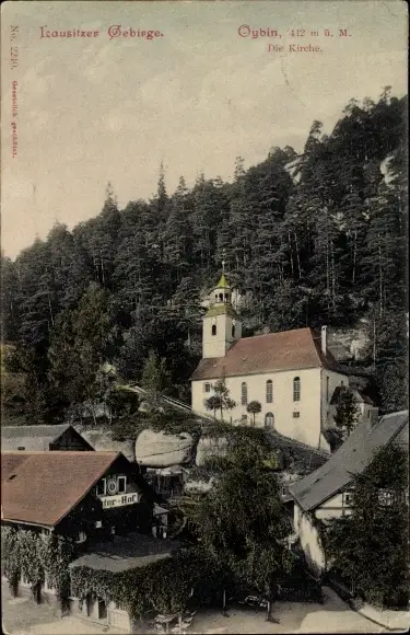 Ak Oybin in der Oberlausitz, Kirche, Wald, Gasthof