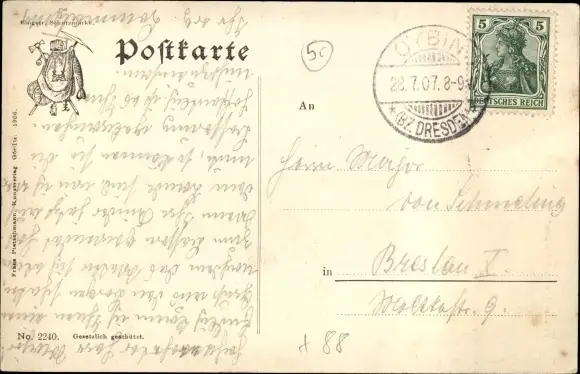 Zustand, siehe Scan, gelaufen, 1907 - ca 9 cm X 14 cm
