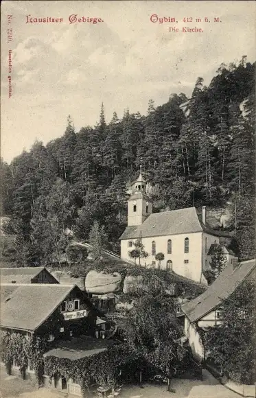 Ak Oybin in der Oberlausitz, Kirche, Wald, Gasthof
