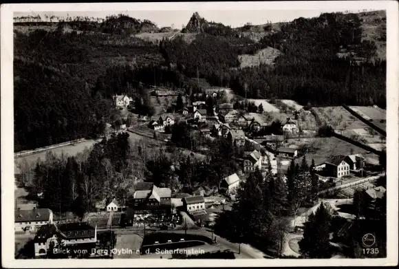 Ak Oybin in der Oberlausitz, Ortspartie, Vogelschau, Scharfenstein