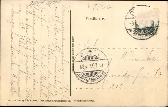 Zustand, siehe Scan, gelaufen, 1906 - ca 14 cm X 9 cm