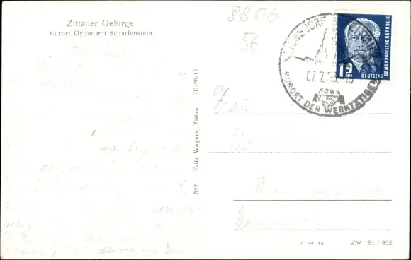 Ak Oybin in der Oberlausitz, Zittauer Gebirge, Teilansicht mit Scharfenstein