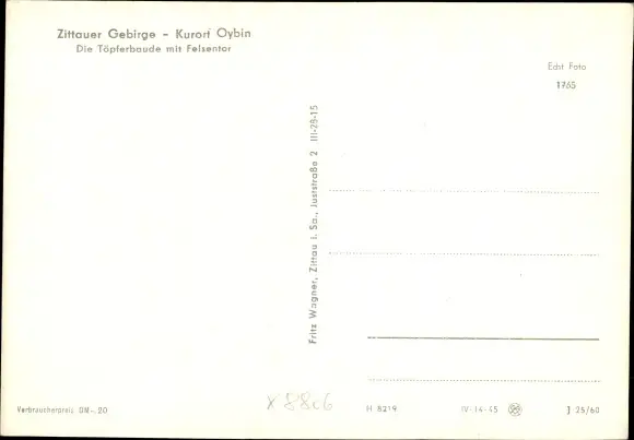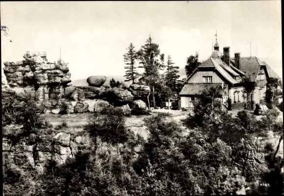 Ak Oybin in der Oberlausitz, Zittauer Gebirge, Töpferbaude mit Felsentor