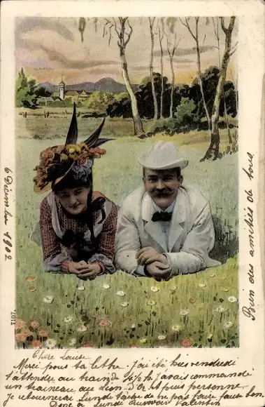 Ak Paar liegt auf einer Wiese