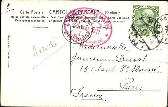 Zustand, siehe Scan, gelaufen, 1911- Stengel 19846 - ca 9 cm X 14 cm