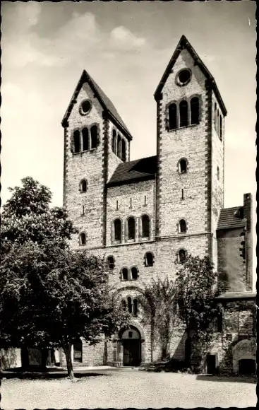 Ak Paderborn, Abdinghofkirche, Frontansicht, Türme