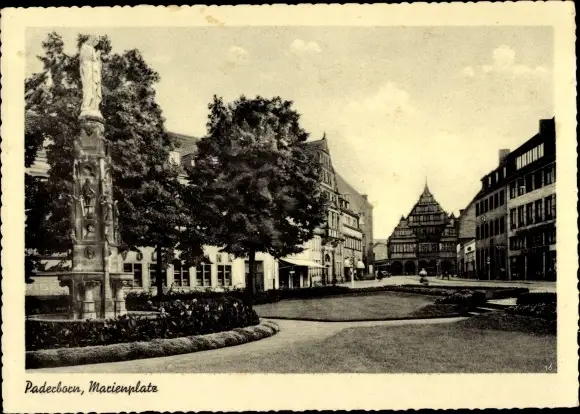 Ak Paderborn in Nordrhein Westfalen, Marienplatz, Geschäftshäuser