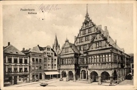 Ak Paderborn in Westfalen, Rathaus, Geschäfte