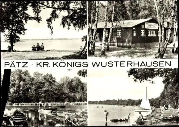 Ak Pätz Bestensee in Brandenburg, See, Boote, Badegäste am Ufer