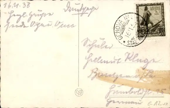 Zustand, siehe Scan, gelaufen, 1938 - ca 14 cm X 9 cm