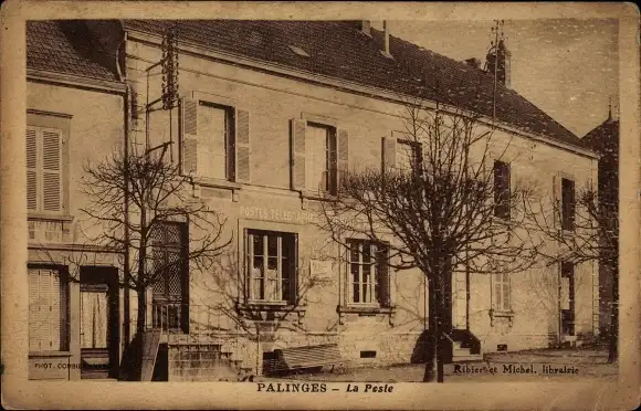 Ak Palinges Saône et Loire, vue générale de la Poste de l'extérieur