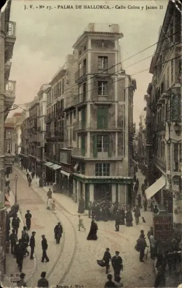 Ak Palma de Mallorca Balearen, Calle Colon und Jaime II