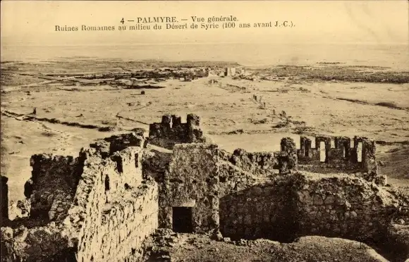 Ak Palmyra Syrien, Vue generale, Ruines Romaines, Römische Ruinen, Wüste
